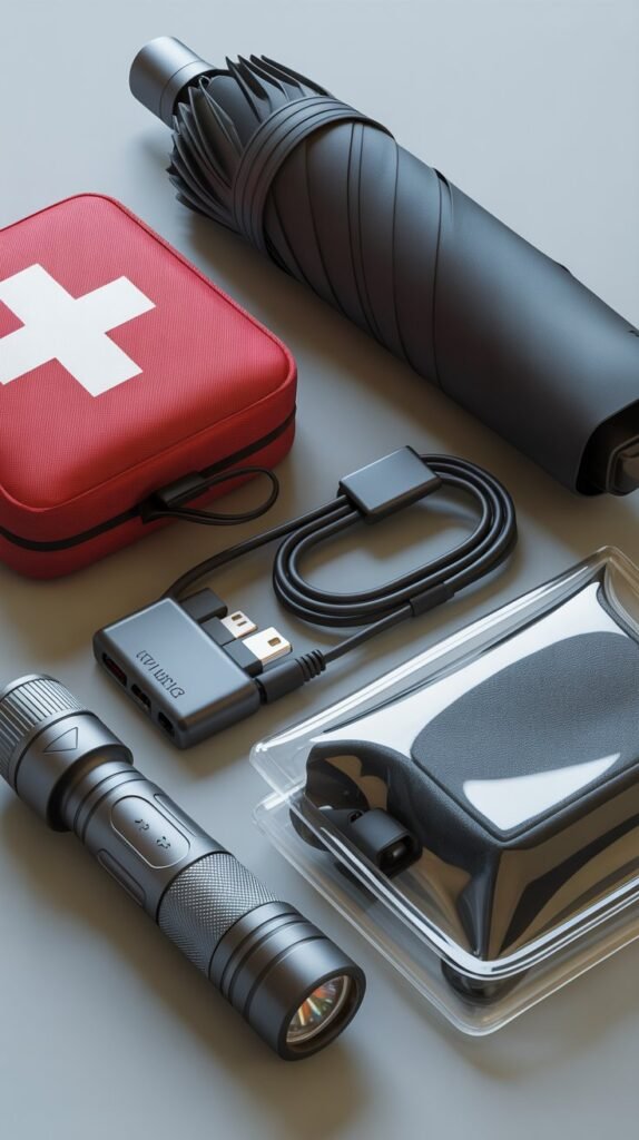 Think of these as your safety net items: a mini first-aid kit, extra medication, reusable rain poncho, portable phone charger, and a copy of important documents (passport, IDs, insurance).