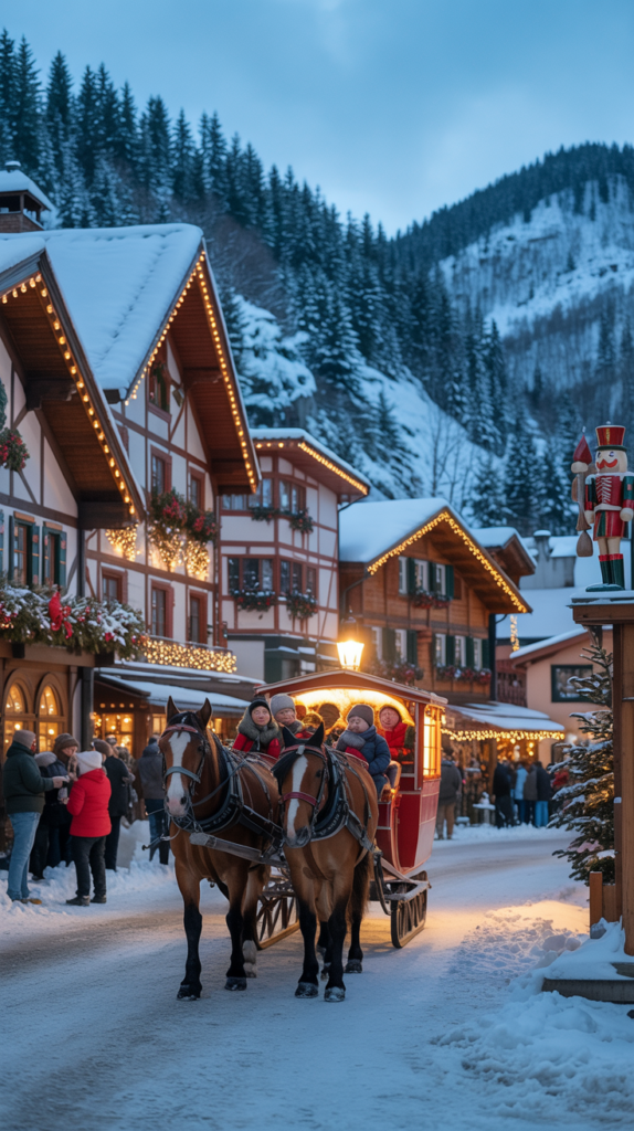 - Costs: Hotels range from $180–$300 per night during December. Sleigh rides start around $25 per person.