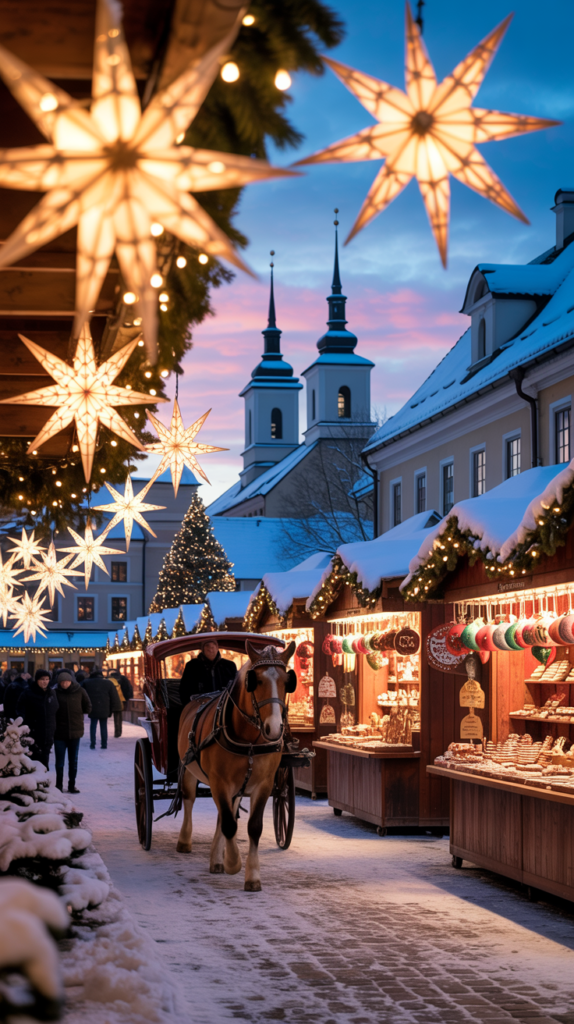 - Streets lit with Moravian stars