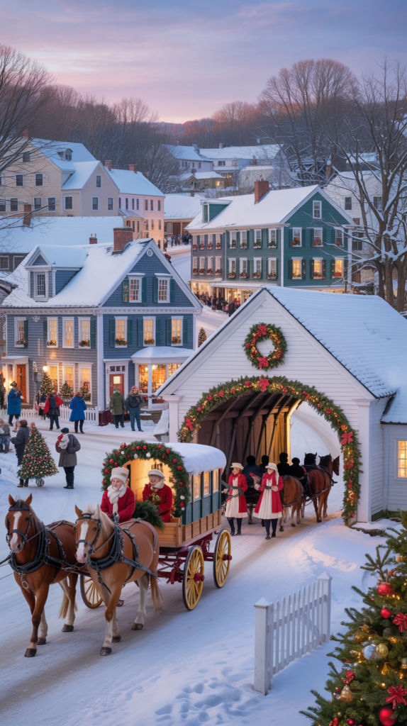 With covered bridges, snowy streets, and cozy inns, it’s as charming as Christmas gets.