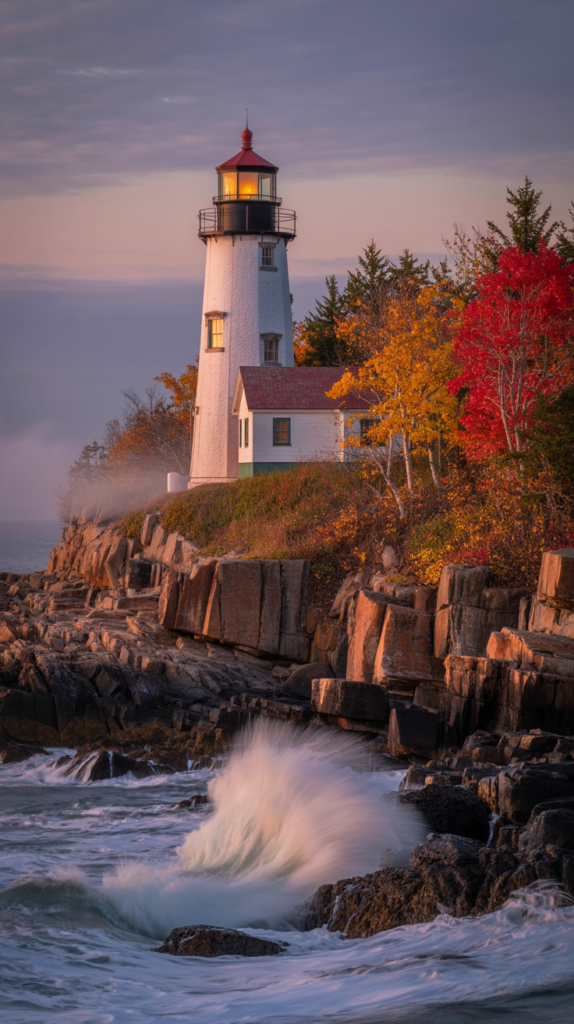 While mountains and forests get much of the fall fame, New England’s coastal towns in Maine are equally stunning. Imagine lighthouses against a backdrop of autumn leaves and crashing waves.