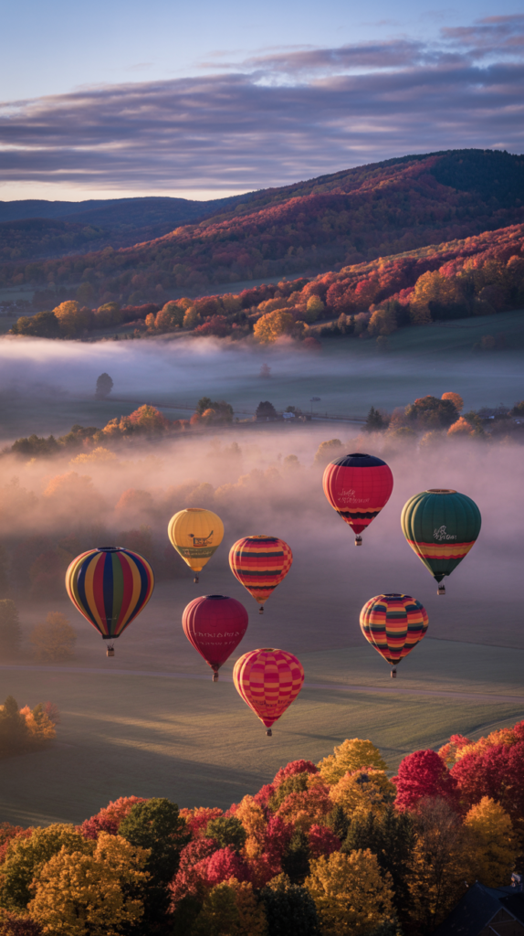 - Stowe, Vermont – Offers balloon tours year-round, with fall being the most breathtaking season.