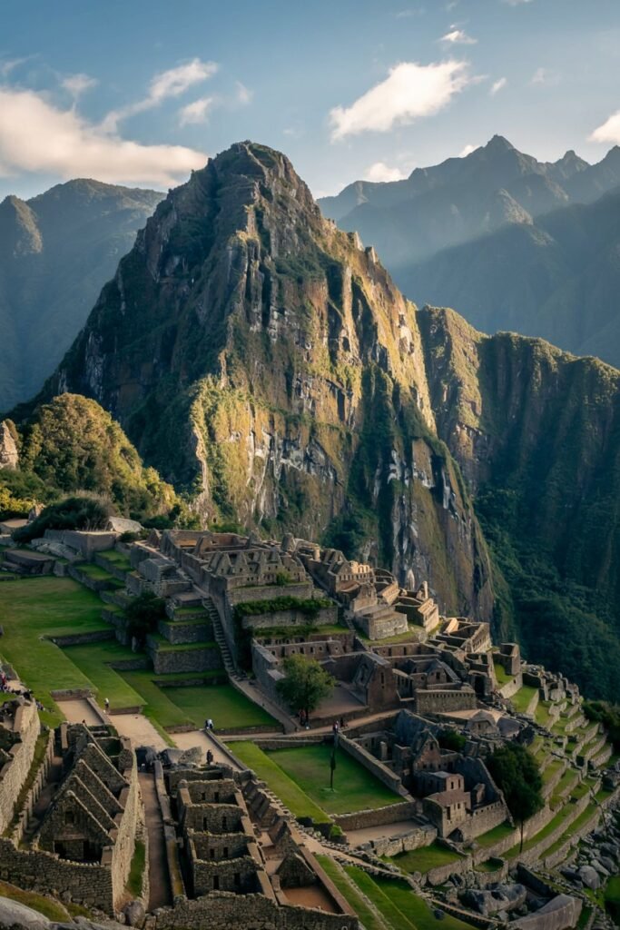Machu Picchu, the legendary Inca city, is perched high in the Andes Mountains, offering a stunning glimpse into Peru’s rich cultural heritage.