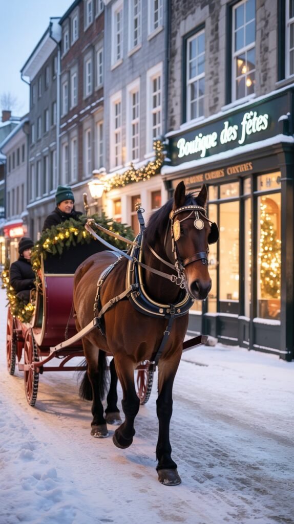 - Horse-drawn carriage rides through the snowy streets