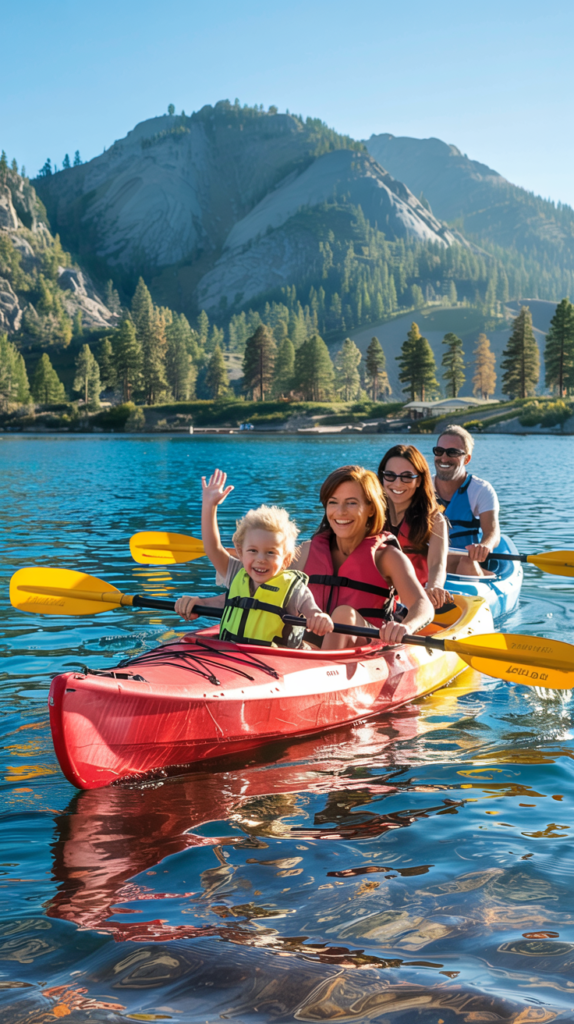 Kid-friendly spots include Sand Harbor, Tahoe Treetop Adventure Parks, and Taylor Creek Visitor Center, where kids can learn about fish and wildlife.