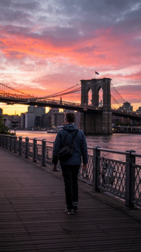 - Early morning walk across the Brooklyn Bridge (beautiful sunrise views).