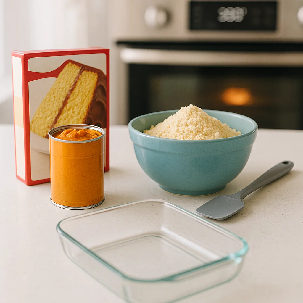 - 1 box yellow cake mix (or spice cake mix for a richer pumpkin flavor)