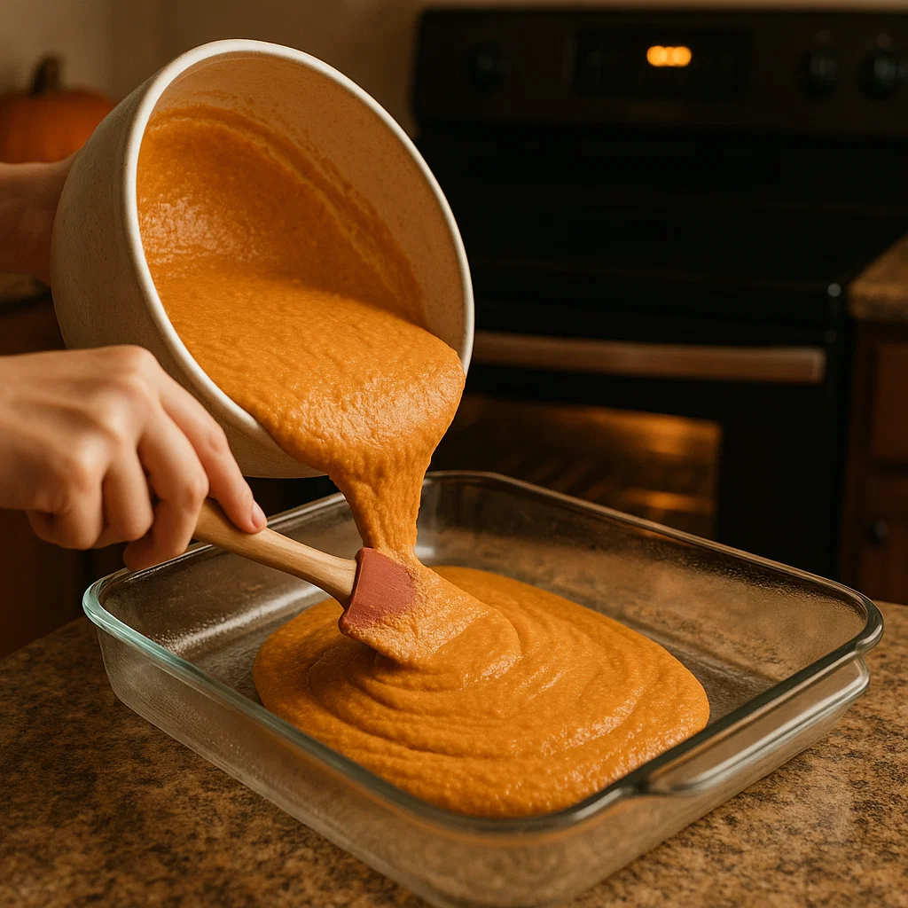 Pour the mixture in a greased 9×13-inch baking dish. Spread it evenly and be sure to smooth the top to ensure even cooking.