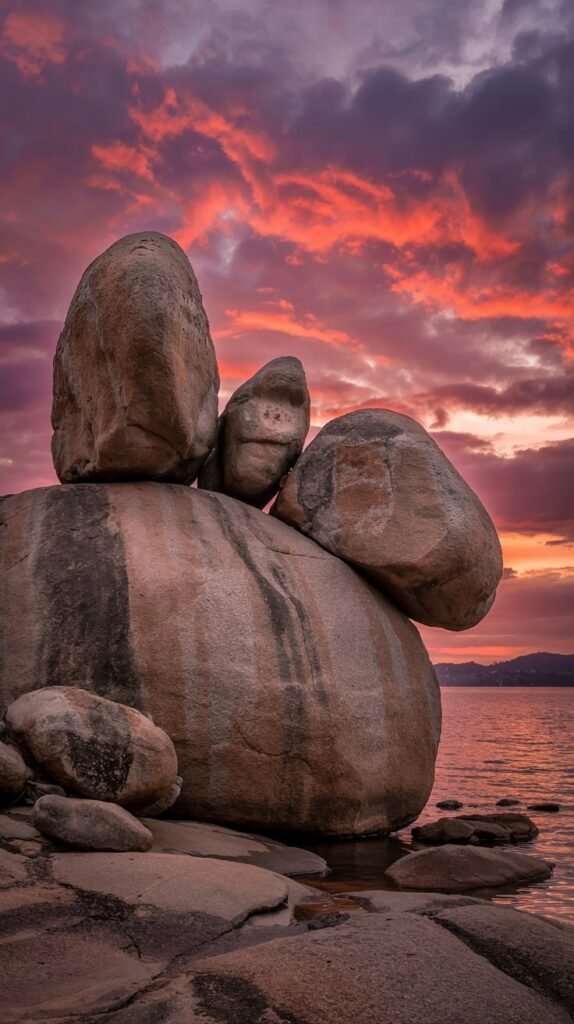 Colossal granite boulders balance impossibly atop each other along the shores of Lake Victoria — a geological wonder and perfect sunset spot.