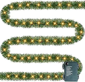 A lush, long garland with built-in lights—perfect for staircases, doorways, mantels, and railings.