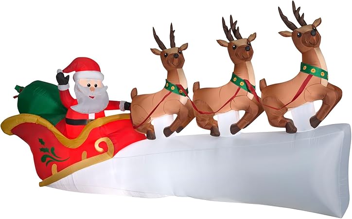 - Center lawn: inflatable Santa in sleigh with reindeer