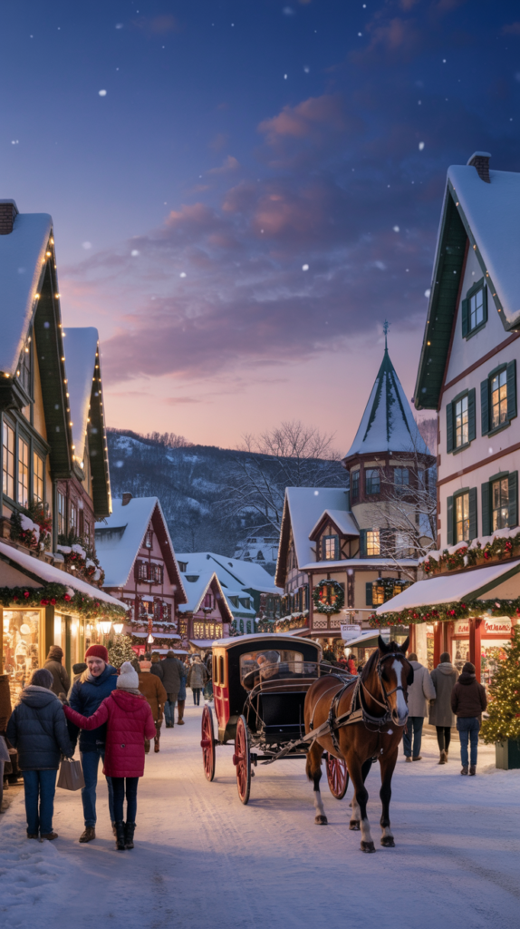 Why go: Holiday town known for Bavarian charm, horse-drawn carriages, and Bronner’s CHRISTmas Wonderland — one of the world’s largest Christmas stores open year-round.