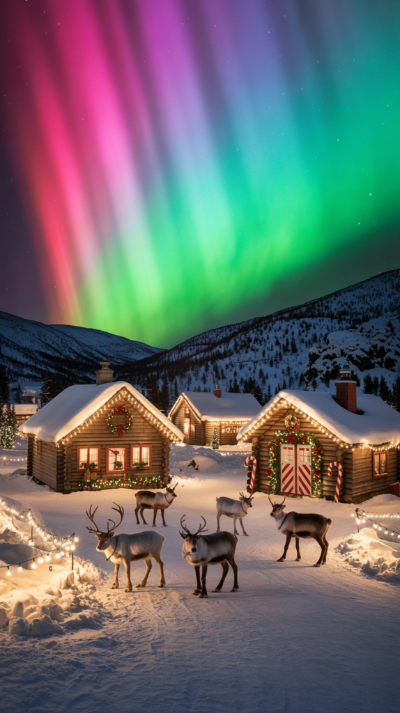 Why go: For a polar Christmas feel, visits to the “North Pole, Alaska” area and Fairbanks bring log-cabin charm, reindeer experiences, and Northern Lights (if conditions permit). It’s extremely atmospheric.