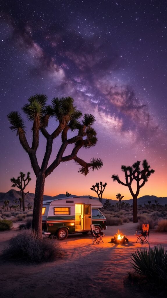 Camp under the stars, explore the Cholla Cactus Garden, and hike the Hidden Valley Trail.