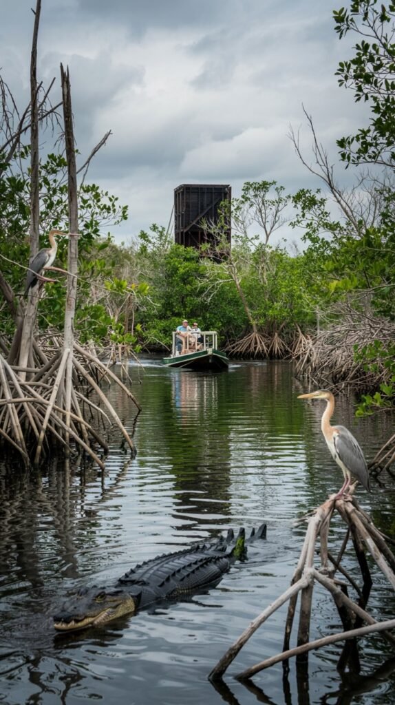 Zip through mangroves and sawgrass marshes on an airboat in search of alligators, herons, and manatees.