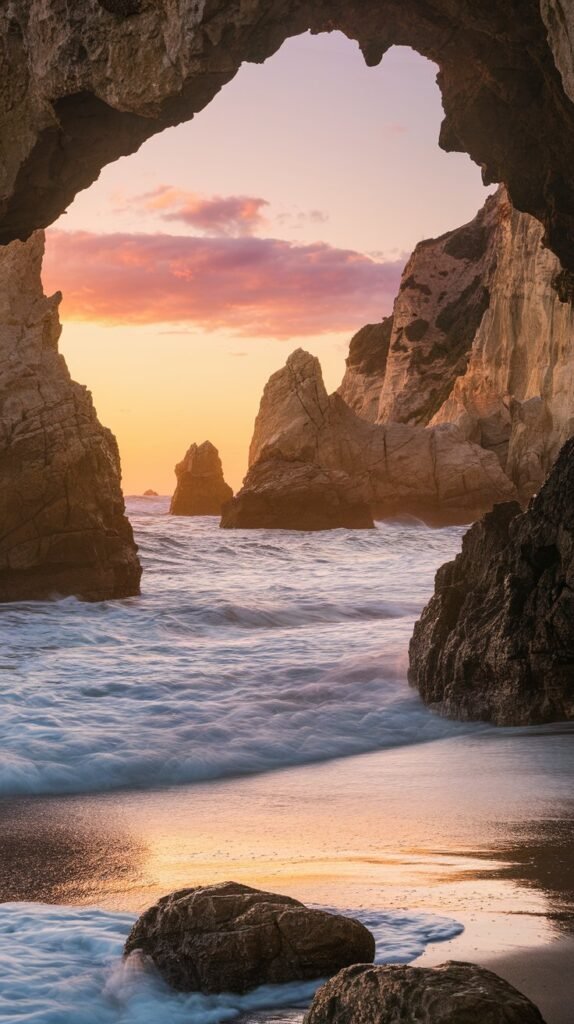 If you’re up for a scenic drive, cruise along Pacific Coast Highway (PCH) to El Matador Beach a hidden cove with sea caves and rock formations.
