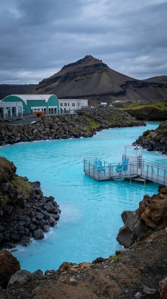 The Blue Lagoon’s milky-blue geothermal waters steam against Iceland’s volcanic landscape, making it feel otherworldly.
