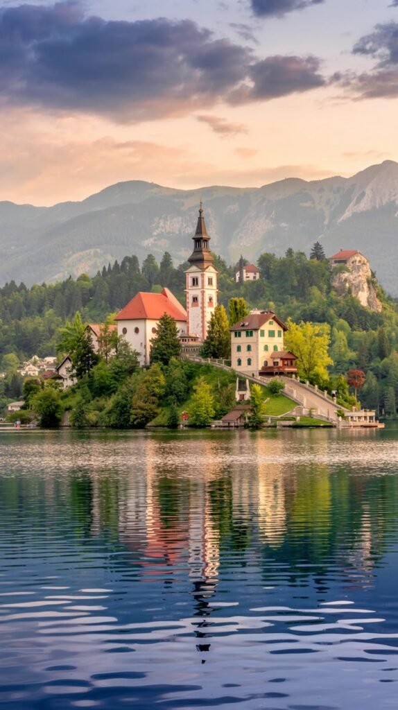 Lake Bled looks like it was designed by a daydreamer a tiny island church sitting perfectly in the middle of a shimmering blue lake, surrounded by forests and mountains.