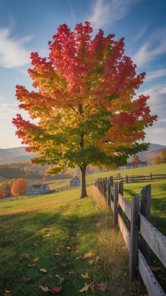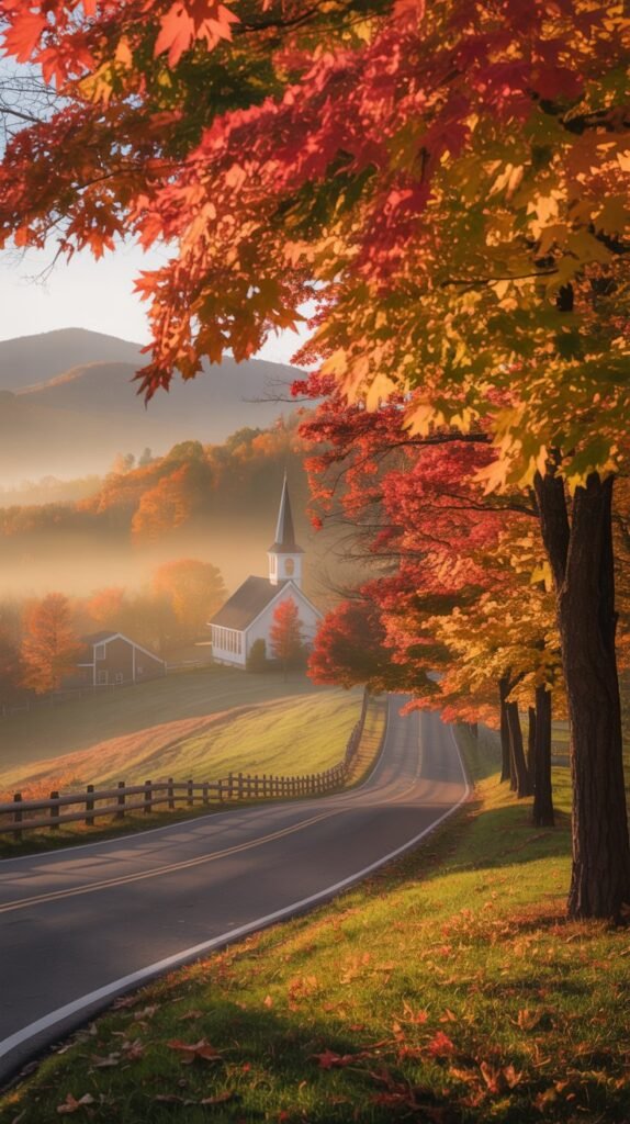 Picture rolling hills covered in fiery red sugar maples, golden birches lining country roads, and misty mornings that give way to crisp, sunny afternoons.