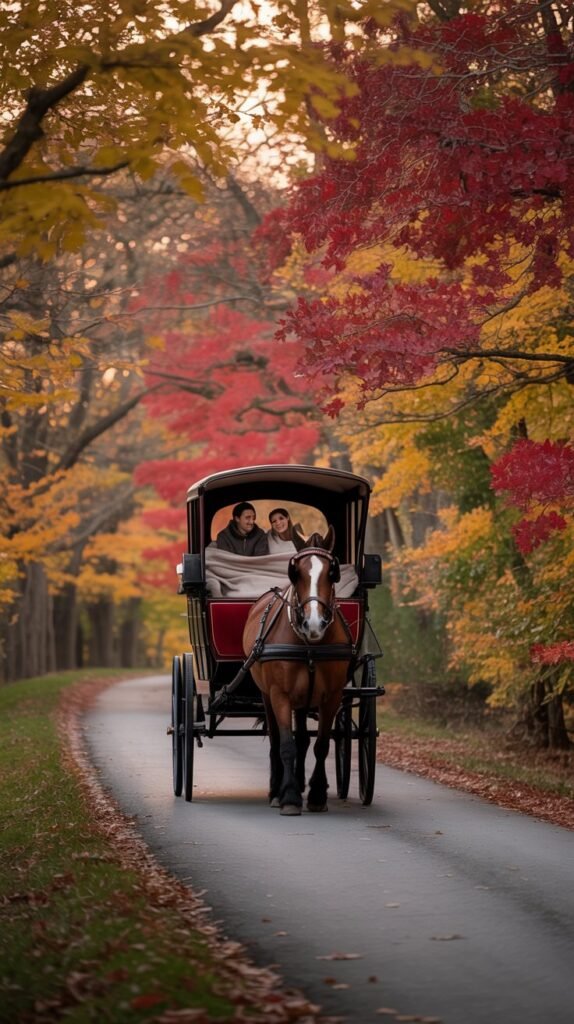 Why go: A horse-drawn carriage through a leaf-strewn road is a classic, romantic fall experience great for couples or families wanting a relaxed pace.