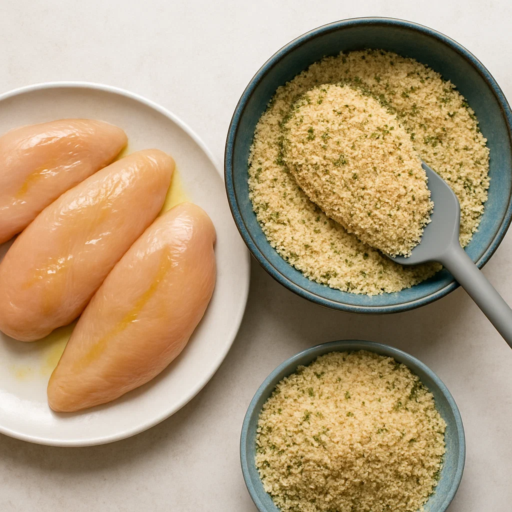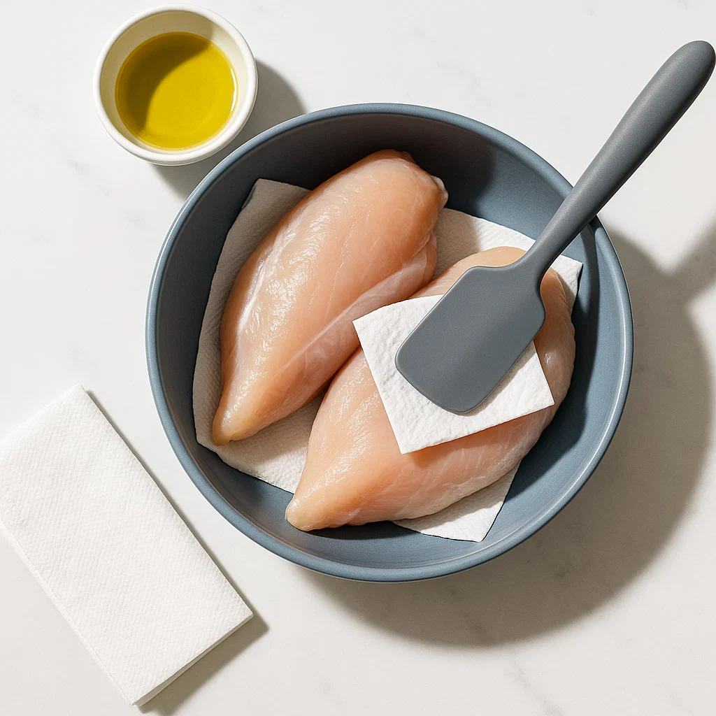 Start by drying your chicken breasts with paper towels. This is an important step because it helps the coating stick better and gives you that perfect crunchy texture. At this point, don’t season the chicken yet, focus on drying it completely.