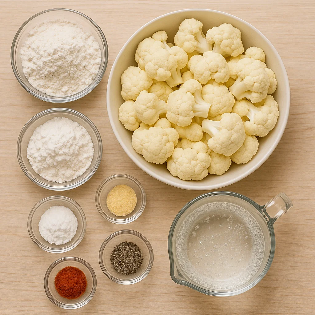 Before you start cooking, gather these ingredients to make your Korean-style crispy fried cauliflower: