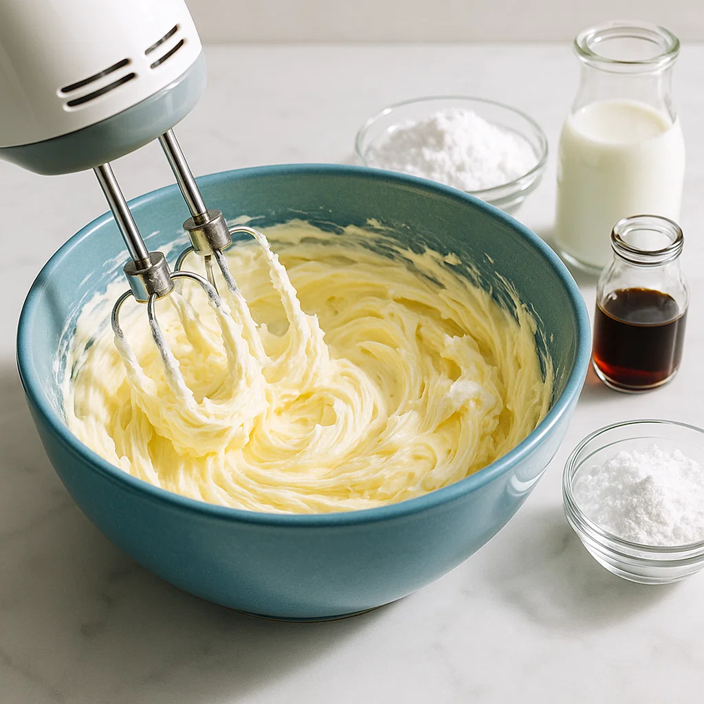 Start by beating the softened butter with an electric mixer until light and fluffy, about 2-3 minutes. Once the butter is well beaten, slowly add the Powdered sugar in small increments. After each addition, mix on low speed until incorporated.