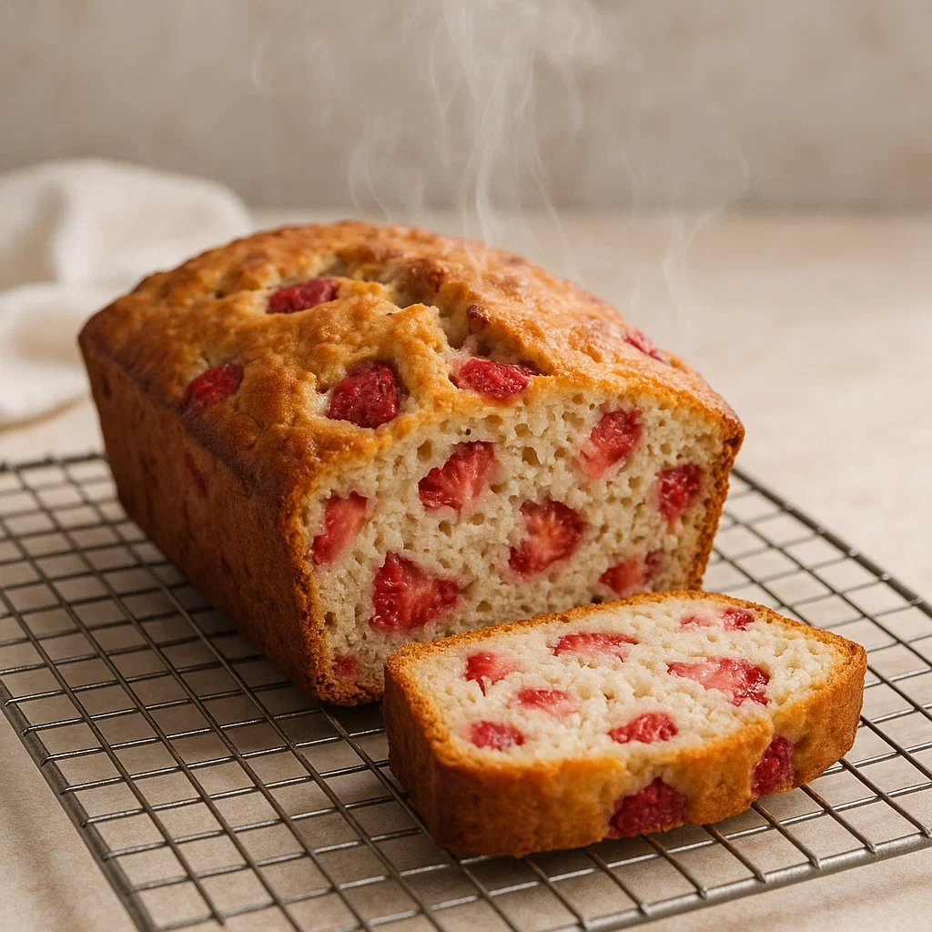 I cannot recommend this recipe enough. This is a great way to use fresh strawberries, and the bread itself is so easy to make. If you’ve never cooked with fresh fruit, this is the perfect place to start. The texture is light and the natural sweetness of the strawberries shines through. This is one of those recipes that never fails to impress.
