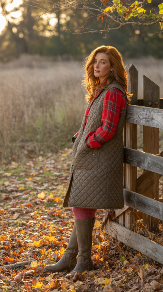 2. Plaid Shirt + Layered Vest + Leather Boots