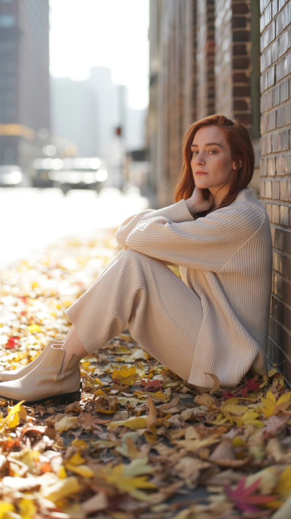 - Set: Choose a ribbed or cable-knit set in beige, cream, or rust tones.
