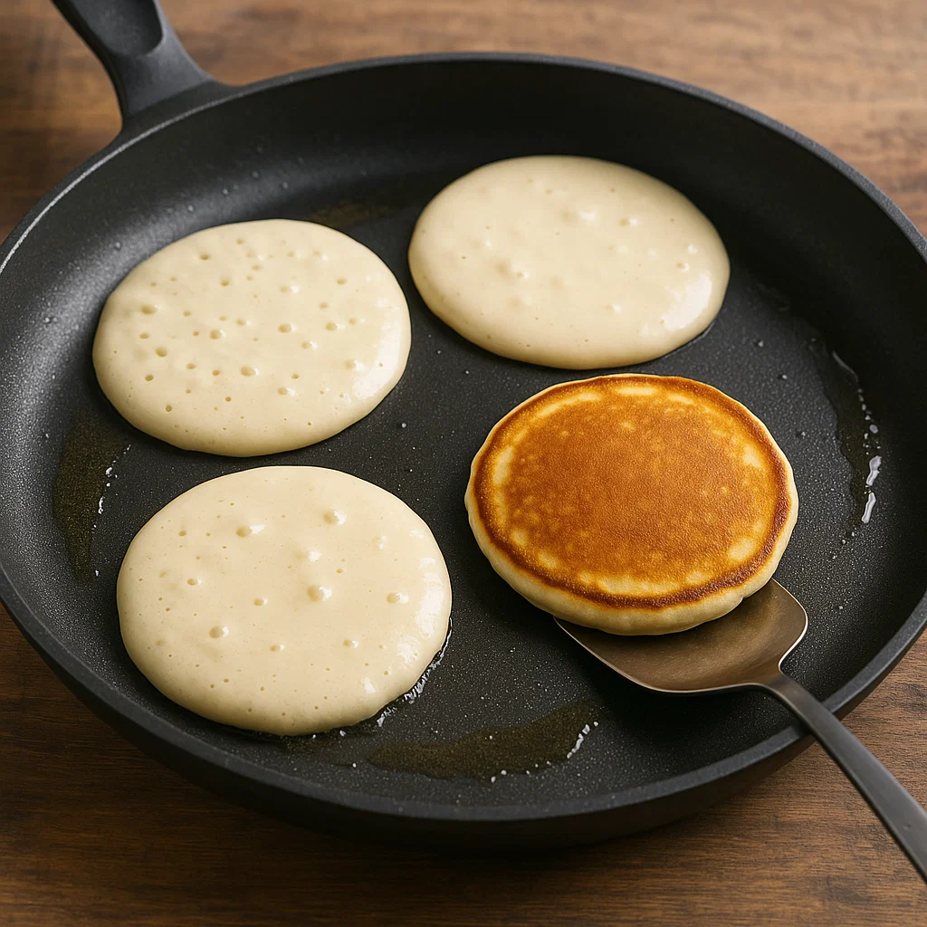 - Heat a non-stick frying pan or griddle over medium heat and lightly grease it with a little oil.