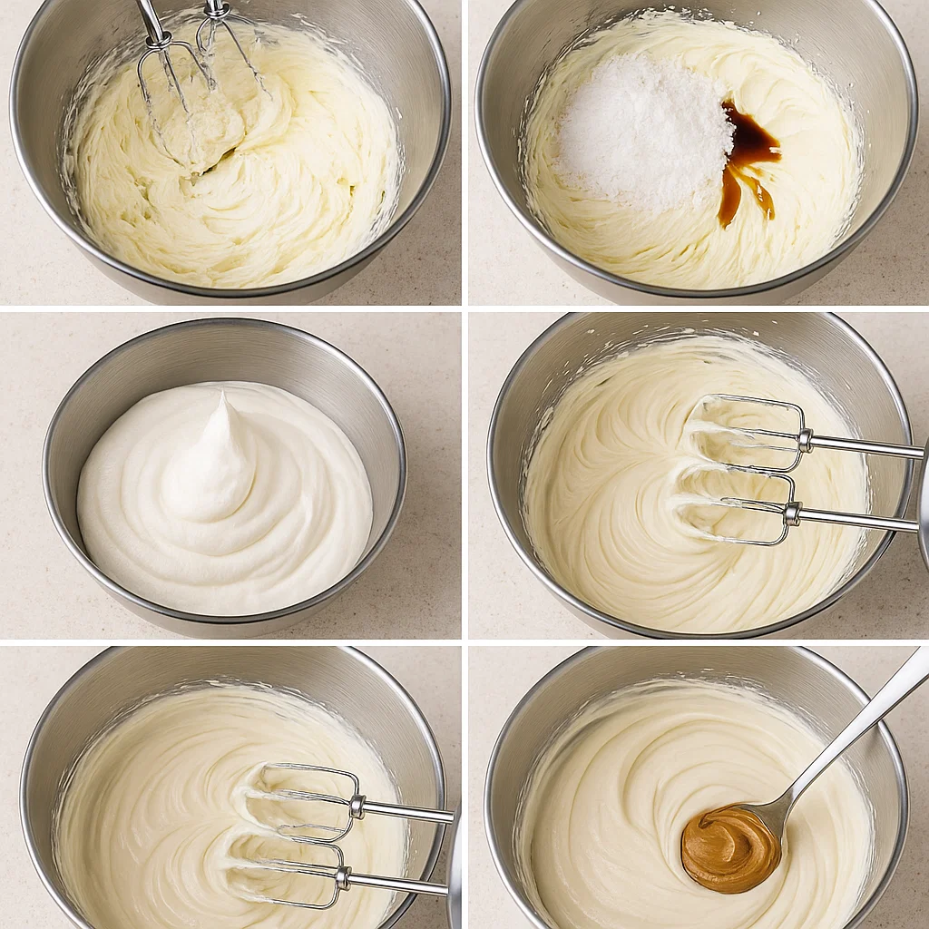 - Gently fold whipped cream into cream cheese mixture until smooth.