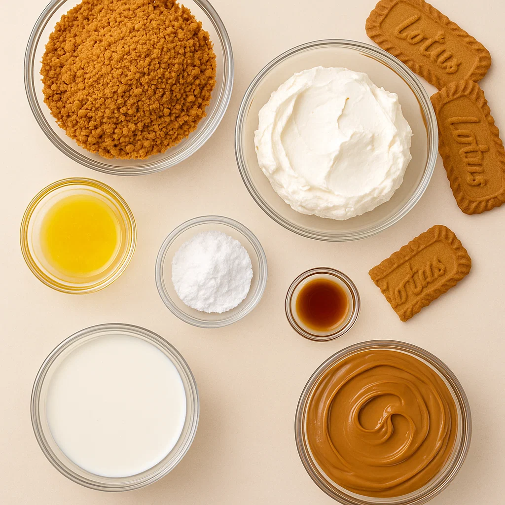 Ingredients for No-Bake Biscoff Cheesecake Cups