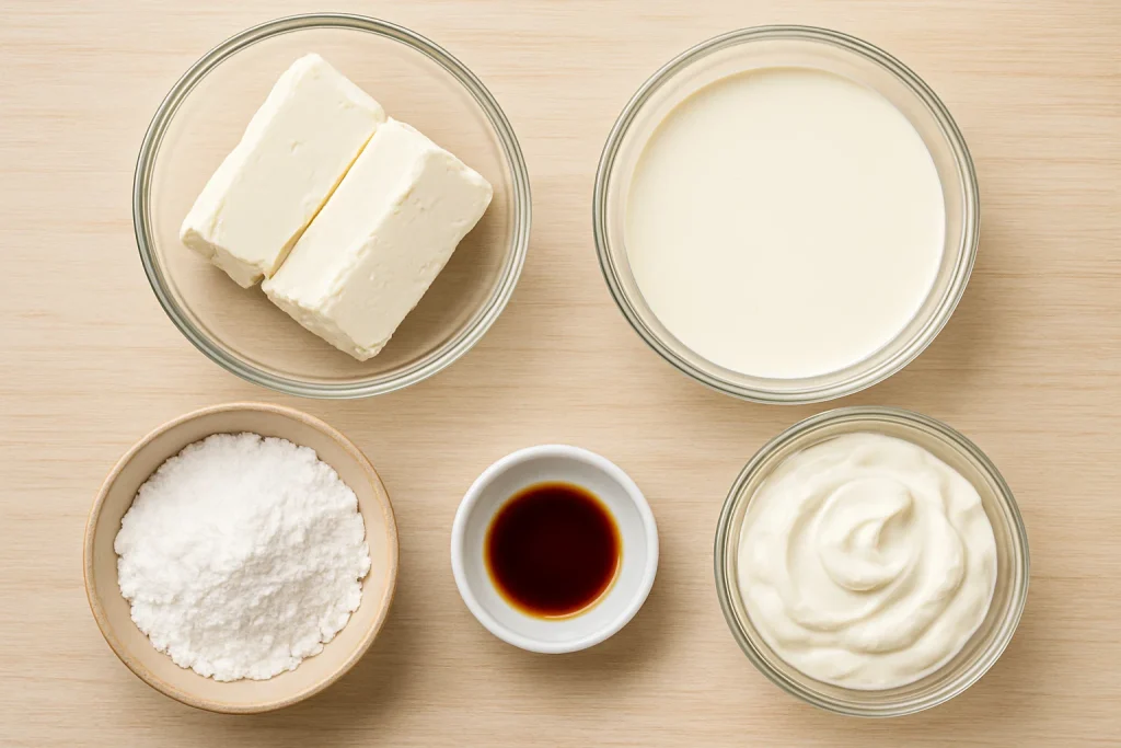 The filling is the heart of any cheesecake, and with no-bake cheesecakes, you’ll find that it’s deliciously creamy and smooth without much effort. Cream cheese forms the base, giving it a rich texture, while heavy cream and powdered sugar help soften and lighten it.