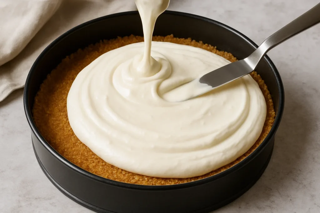 Pour the filling onto your prepared crust and spread it evenly.
