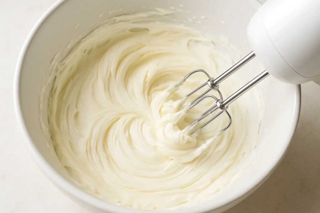 Beat the softened cream cheese with a hand mixer or stand mixer until smooth and creamy.