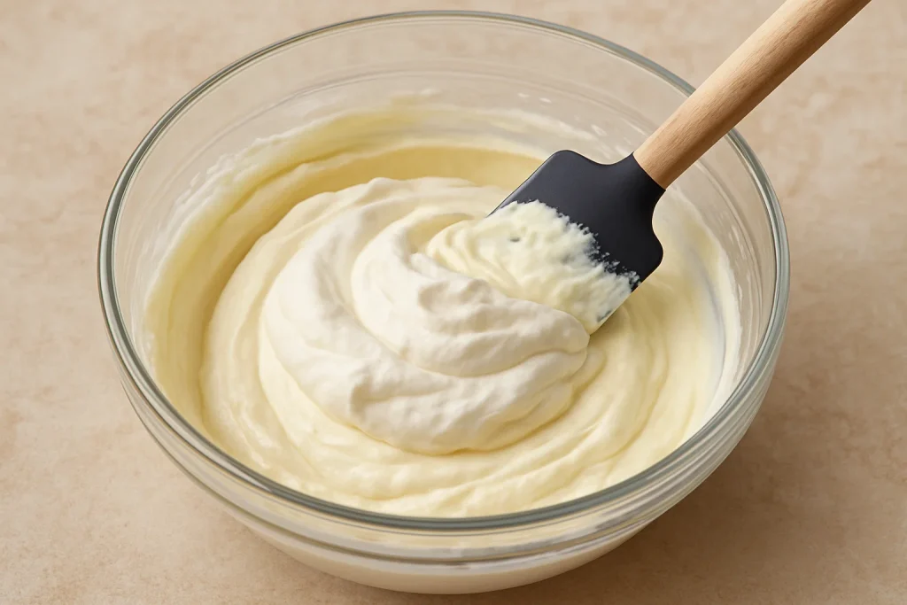 Gently fold the whipped cream into the cream cheese mixture until smooth and well incorporated.