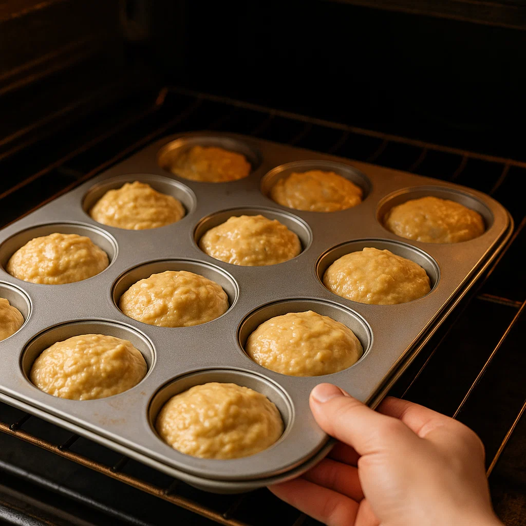Pour the muffin batter evenly into the prepared muffin pan, filling each cup about ¾ full. Bake in preheated oven for 18 to 20 minutes or until a toothpick inserted in center comes out clean. The top should be golden brown and slightly firm to the touch.