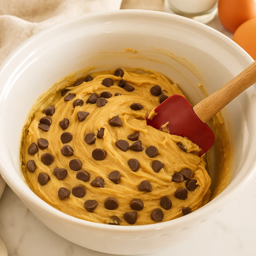 - Fold in the chocolate chips (semi-sweet chocolate and milk chocolate if using), making sure they are evenly distributed throughout the dough.