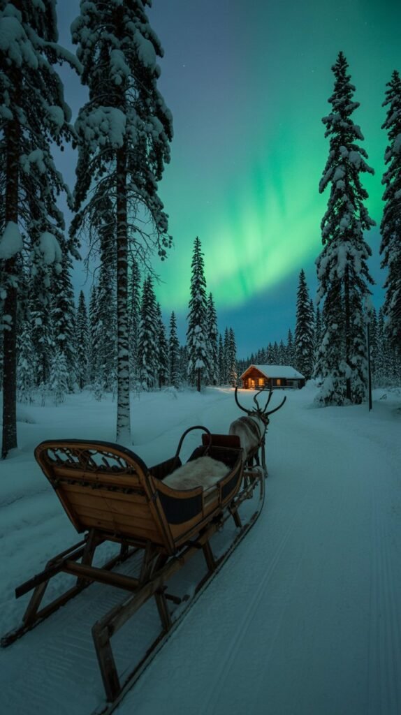 Think Northern Lights, reindeer sleigh rides, snow-covered forests, and cozy log cabins.