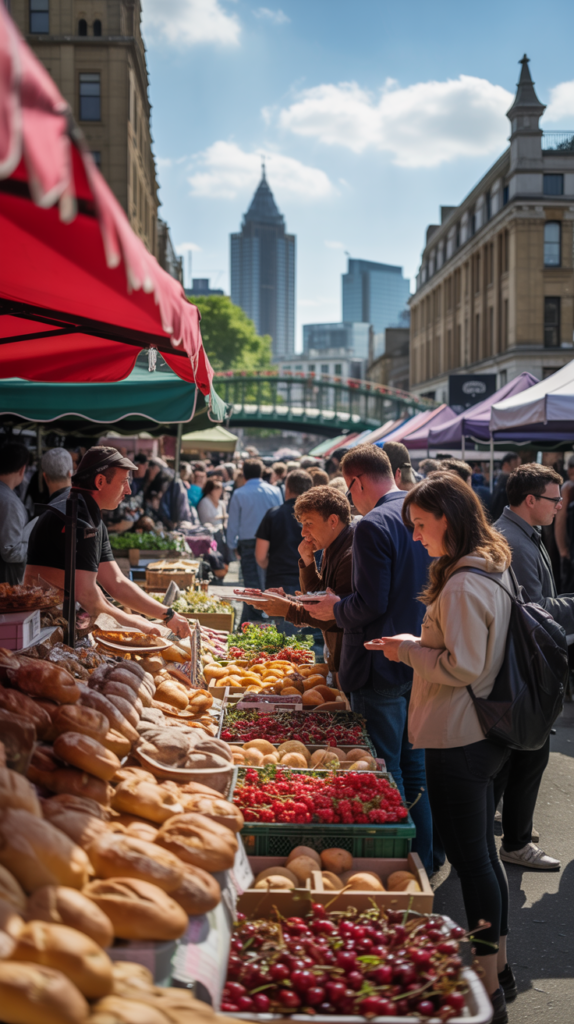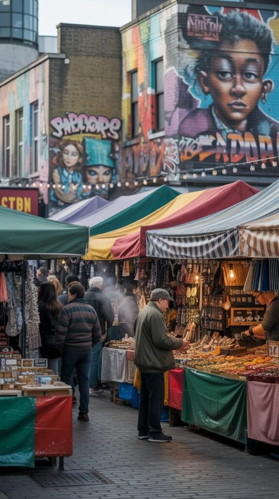 - A quirky mix of food stalls, vintage shops, and live music.