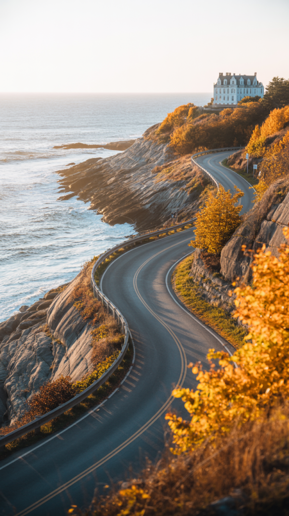 • Ocean Drive Scenic Loop: Coastal panoramas and gilded-age mansions set against a backdrop of golden trees.